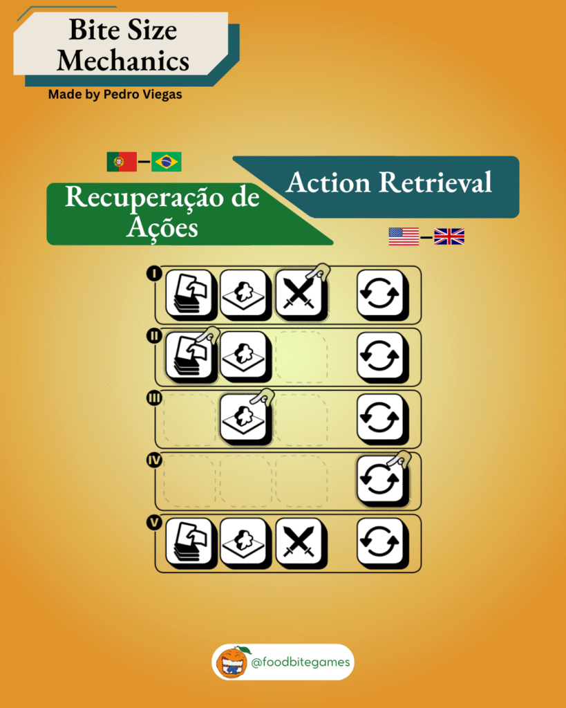 A Recuperação de Ações acontece quando o jogador quer recuperar todas as ações que já usou. Normalmente, esta ação ocupa o turno todo.